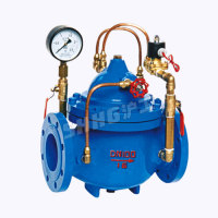 1、作泄压阀:当泄压/持压导阀调整为泄压状态时,水通过针阀、主阀控制室、球阀A、泄压/持压导阀、球阀B流向出口,此时主阀处于开启状态。当进口压力超过泄压/持压导阀设定的安全值时,泄压导阀会自动开启,通过球阀C放出部分水,使管路泄压。当压力恢复到安全值时,泄压阀自动关闭。作泄压阀时,各球阀常开。